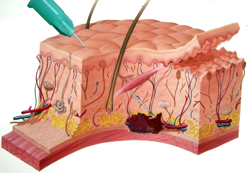 • Más invasiva: La aguja hipodérmica afilada también cortará la piel.