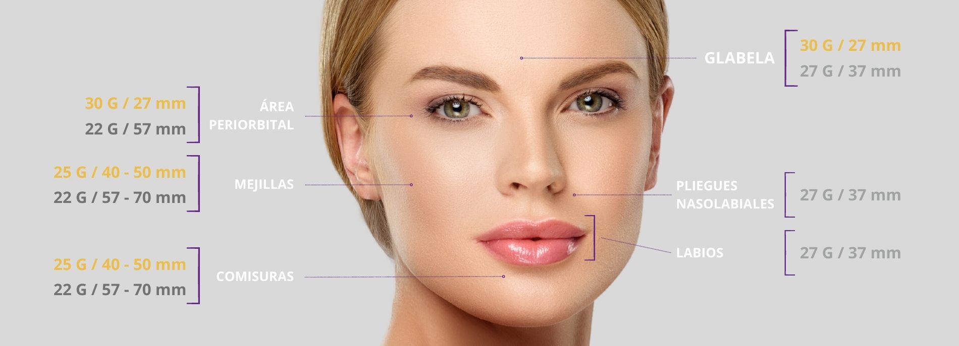 Diseñadas especialmente para realizar técnicas de Relleno Dérmico y Bioplastia con la máxima seguridad a la hora de introducir el producto.