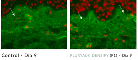 ↑ colágeno en dermis papilar y reticular superior