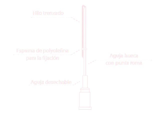 Hilo Reabsorbible de Policaprolactona P(LA/CL) de 940 mm. envuelto en espiral alrededor de una cánula de punta roma