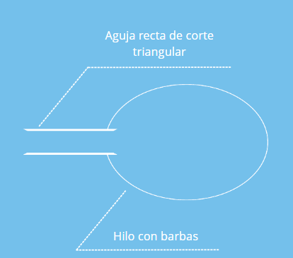 Hilo Thread de 250 mm con barbas bidireccionales unido a 2 agujas rectas de corte triangular